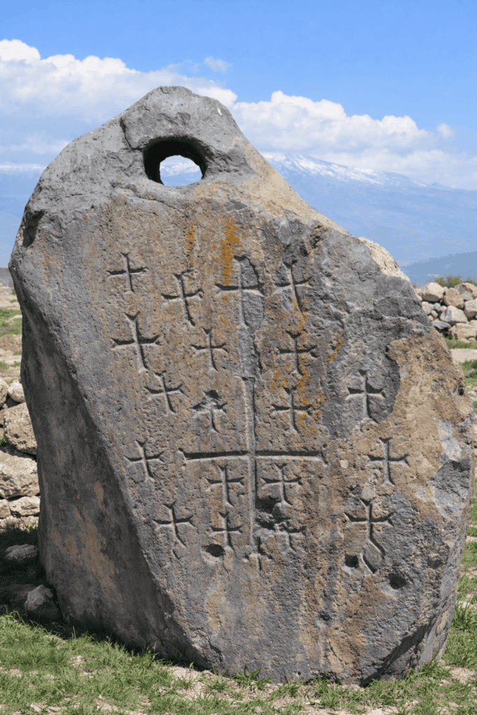 Miles from the site, in the village of Kazan (formerly Arzap), archaeologists found massive stones standing upright. These stones weigh up to 10 tons each and have holes drilled through the top. Locals call them “Anchor Stones.” Marine engineers recognize them as Drogue Stones.